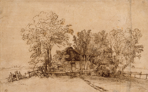 Rembrandt van Rijn; Cottage among Trees; 1648-50; pen and brown ink, brush and brown wash; "Rembrandt (Rembrandt van Rijn): Cottage among Trees" (29.100.939) In Heilbrunn Timeline of Art History . New York: The Metropolitan Museum of Art, 2000–. http://www.metmuseum.org/toah/works-of-art/29.100.939. (October 2006)