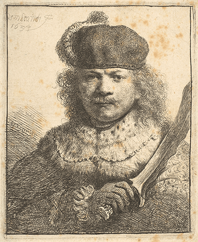 Rembrandt van Rijn; Rembrandt with Raised Sabre; etching with touches of burin; 1634