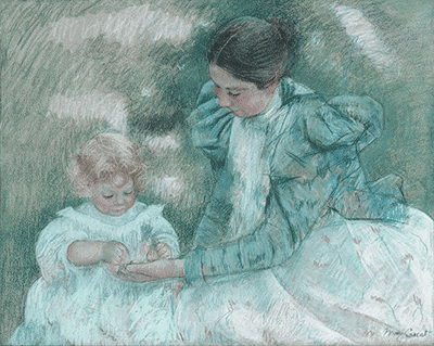 Mary Cassatt; Mother Playing with Child; 1897; pastel on wove paper; "Mary Cassatt: Mother Playing with Child" (22.16.23) In Heilbrunn Timeline of Art History . New York: The Metropolitan Museum of Art, 2000–. http://www.metmuseum.org/toah/works-of-art/22.16.23. (October 2006)